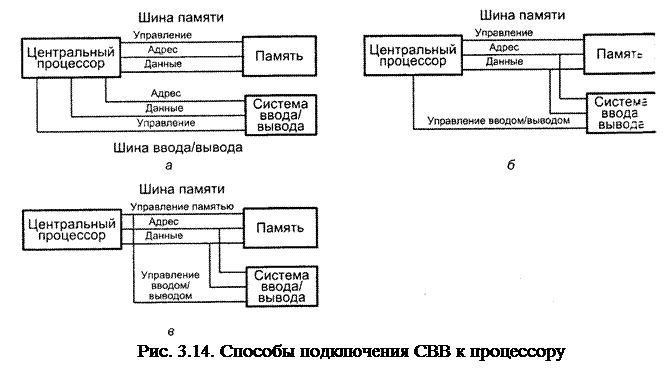 В архитектуре ВС выделяют три основных способа подключения СВВ процессору: