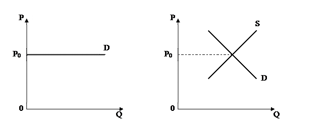 Рисунок 6.3. Кривая спроса совершенно конкурентной фирмы (а) и рынка (б)