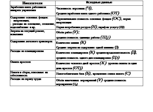 Для расчёта влияния этих факторов необходимо иметь следующие исходные данные по затратам:
