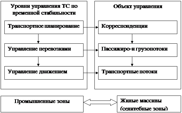 На рис. 7 приведены соответствующие уровни временной стабильности и соответствующие им объекты управления транспортной системы.