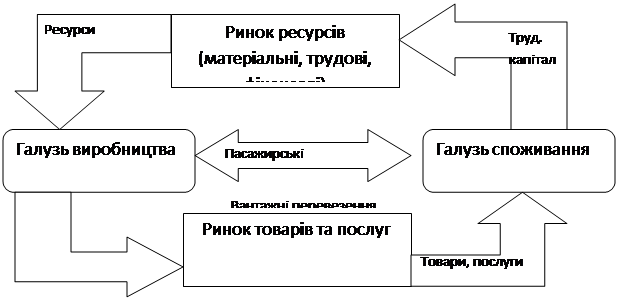 Рис. 6 Взаимодействие транспортной системы крупного города с другими системами