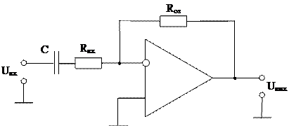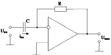 Дифференциатор вырабатывает выходной сигнал, пропорциональный скорости изменения во времени входного сигнала. На рисунке 5.4 показана принципиальная схема простейшего дифференциатора.