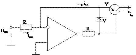 В простейших источниках тока усилитель управляет выходным транзистором (рисунок 6.1). Эмиттерный ток транзистора определяется величиной входного тока