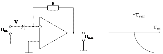 Усилитель в таком включении аппроксимирует логарифмическую функцию