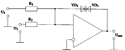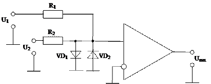 Таким образом, сравниваемые напряжения должны иметь противоположные знаки. Благодаря включению диодов, напряжение на прямом входе (U0) не может превысить