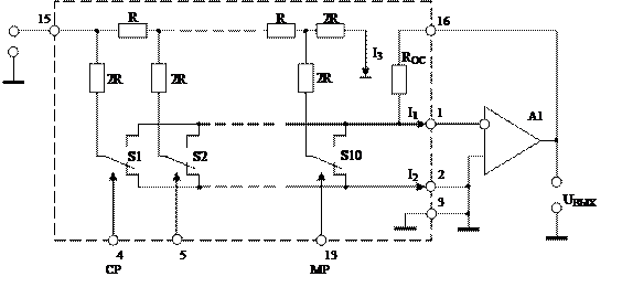 Для получения выходного напряжения следует дополнять преобразователь внешним операционным усилителем, в обратную связь которого включается резистор Roc, входящий в состав микросхемы.