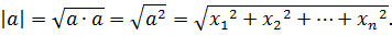 – вектора обладает всеми свойствами длины векторов плоскости и пространства.