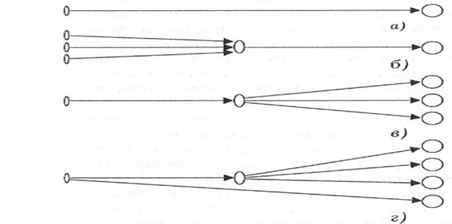 Принципиально возможные схемы организации грузопотоков показаны на рисунке 1.