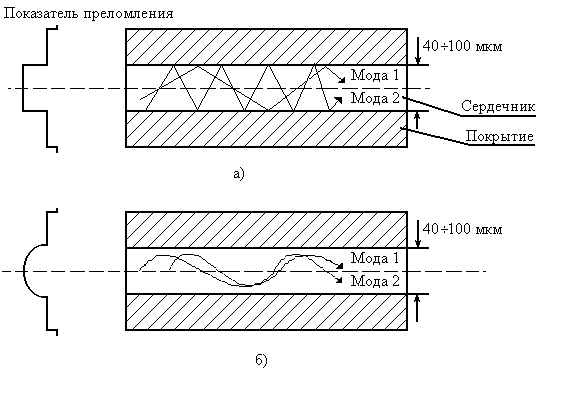 Модой называется угол отражения световых лучей от отражающей оболочки (стеклянной оболочки с меньшими показателем преломления, чем у сердечника).