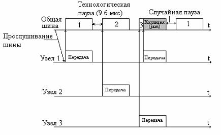 Рис. 4.2. Метод доступа с опознаванием несущей и обнаружением коллизий