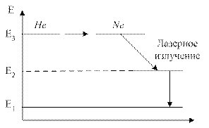 При столкновениях возбужденных атомов гелия с атомами неона последние возбуждаются и переходят на один из верхних уровней неона, близко расположенных к соответствующему уровню гелия. Переход атомов неона с этого уровня на один из нижних