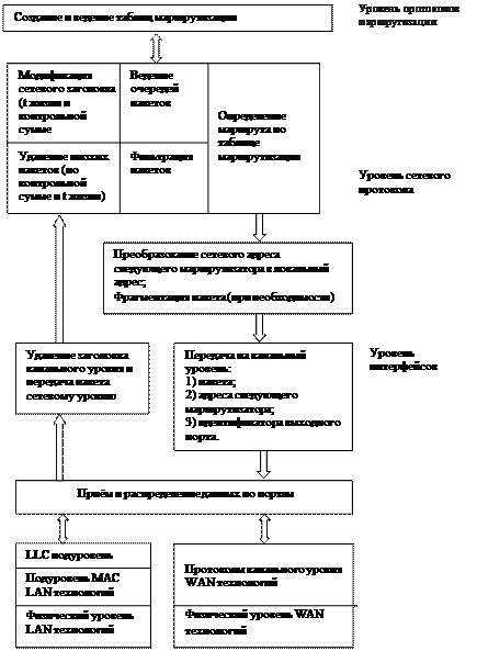 Рассмотрим основные этапы работы маршрутизатора более подробно. Функциональная модель маршрутизатора показана на ри.7.6..