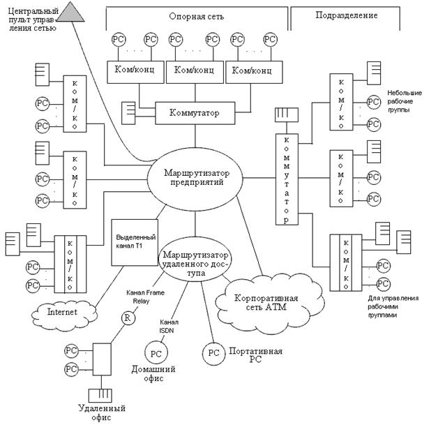 На уровне сети предприятия (рис. 7.10.) особое значение приобретает маршрутизация по следующим причинам: