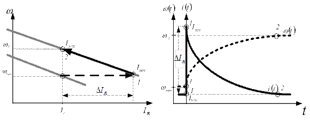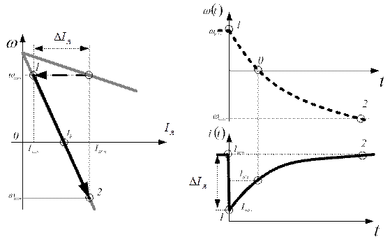 Ход процессов существенно изменится при реактивном моменте на валу. ПП разделяется на два этапа.