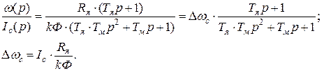 С помощью этой схемы получим передаточную функцию по возмущающему воздействию – статическому току двигателя.