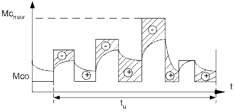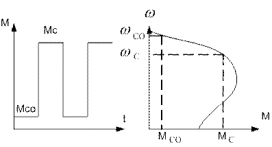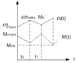 Разница между статическим моментом и моментом двигателя, в процессе протекания пика нагрузки, покрывается за счет запаса кинетической энергии, накопленных во вращающихся частях.