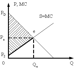 Поэтому потребитель выигрывает, покупая товар дешевле, чем он мог за него заплатить. Этот выигрыш равен площади заштрихованного треугольника РDЕРe (рис. 6.2).