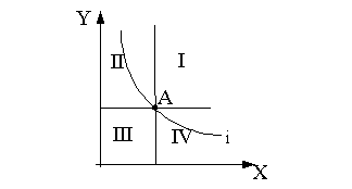 Предположим, что i – кривая безразличия для этих товаров. Все наборы товаров, находящиеся на кривой безразличия i во II и IV квадрантах, идентичны набору А. Все наборы I-го квадранта будут предпочтительнее, чем набор в точке А, а все наборы III-го квадранта будут менее предпочтительнее, чем набор А.