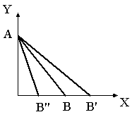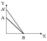 1. Точки А и В показывают максимально возможный объем потребления товара Y и Х соответственно, т.е. весь бюджет тратится только на товар Y или товар Х соответственно.