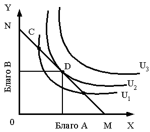 Рис. 7.4. Положение равновесия потребителя (в ординалистской теории полезности)