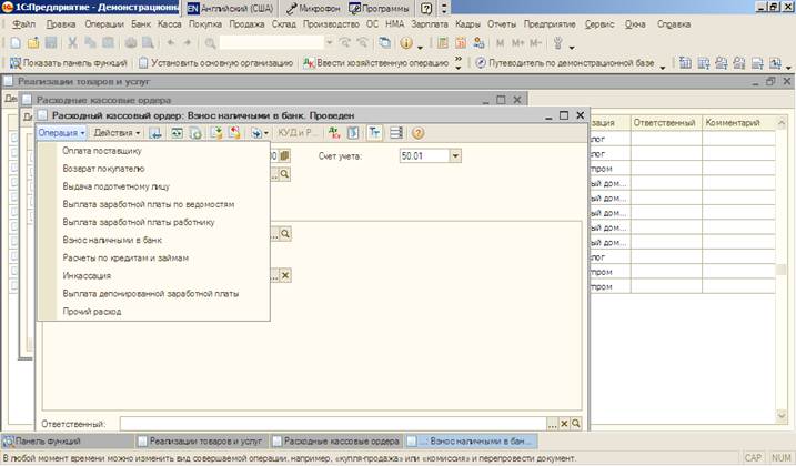 В зависимости от установленного вида операции с помощью данного документа может быть зафиксирован расход наличных денежных средств по различным торговым операциям (см. рис.11):