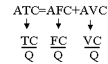 Средние издержки (АТС) подразделяются на средние постоянные (AFC) и средние переменные (AVC) издержки