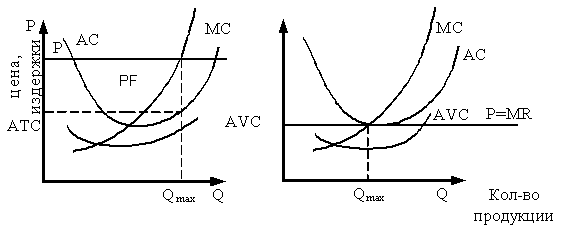 1. Если при оптимальном объеме производства Qmax, P=MC>AC, то фирма будет получать экономическую прибыль: