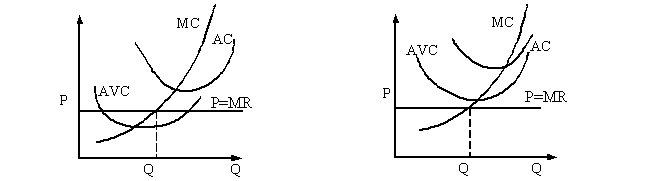| Рис. 14.4. Минимизация издержек | Рис. 14.5. Выход фирмы из отрасли в короткий период |