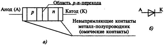 Рис. 2.2. Схема структуры полупроводникового диода (а)
