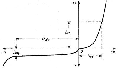 Основные характеристики полупроводникового диода представляются его вольт-амперной характеристикой (ВАХ). Вольт-амперная характеристика – это зависимость тока i, протекающего через диод, от напряжения u, приложенного к диоду. Вольт-амперной характеристикой называют и график этой зависимости (рис. 2.3).
