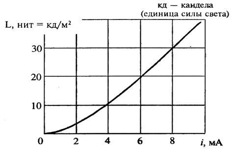 Яркостная характеристика для светоизлучающего диода типа АЛ102А представлена на рис. 6.2. Цвет свечения этого диода – красный.