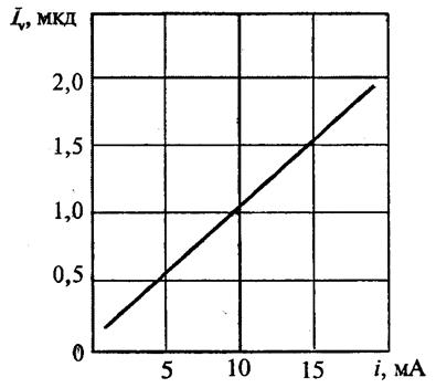 График зависимости силы света от тока для светоизлучающего диода типа АЛ316А представлен на рис. 6.3. Цвет свечения – красный.