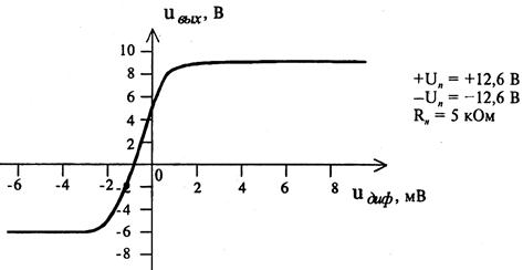 Передаточная характеристика. Операционный усилитель хорошо характеризует его передаточная характеристика – зависимость вида