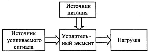 Усилитель – это электронное устройство, управляющее потоком энергии, идущей от источника питания к нагрузке. Причем, мощность, требующаяся для управления, намного меньше мощности, отдаваемой в нагрузку, а форма входного (усиливаемого) и выходного (на нагрузке) сигналов совпадают (рис. 9.1).