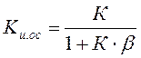 Коэффициент усиления усилителя, охваченный обратной связью, определяется выражением