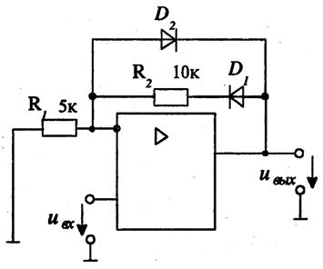 Рис. 10.8. Схема усилителя на ОУ с диодами