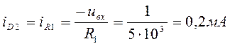 Проверим правильность сделанного предположения, для чего определим ток iD1 диода D1 и напряжение uD2 диода D2. Используя допущение о том, что uдиф = 0, получаем uD2 = –2 В и iD1 = 0,2 мА. Так как напряжение на диоде D2 отрицательное, а ток через диод D1 положителен, можно утверждать, что предположение было правильным.