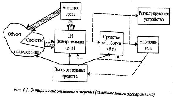 Прежде всего, следует выделить эмпирические (вещественные) и теоретические (модельные) элементы измерения. К эмпирическим элементам относятся (рис. 4.1):