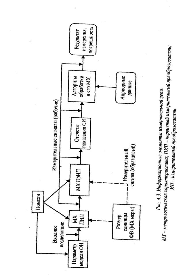 Особой частью СИ является цепь передачи размера единицы физической величины, формирующая сигнал от меры. Для большинства рабочих приборов подобная цепь составляется только при аттестации (испытаниях) или поверке либо совмещается с рабочей цепью, при этом образцовый и измерительный сигналы сравниваются визуально. Как реальное техническое средство СИ описывается своей моделью, которая может быть представлена достаточно полно его метрологическими характеристиками (MX). Последние, являясь характеристиками свойств средств измерений, дают возможность Определять параметры преобразования сигнала и судить о пригодности СИ для выполнения измерений с заданной точностью.