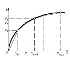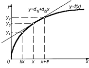 Если функция преобразования СИ нелинейная (рис.8.9) и используется ее кусочно-линейная аппроксимация, то результаты тактовых измерений представляются в виде системы