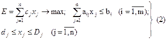 Задачи оптимизации, содержащие линейные алгебраические зависимости в целевой функции и ограничениях, являются задачами ЛП. Для задачи ЛП система (1) будет иметь вид (2):