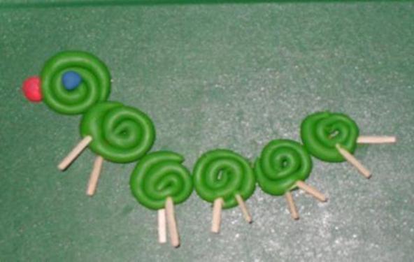 Воспитатель: Посмотрите на наш волшебный поднос. Из чего можно сделать ножки гусенице?