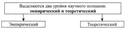 | Основными методами, используемыми в процессе эмпирического познания, являются методы наблюдения,эмпирического описания и эксперимента | Метод гипотезы,а также формулирования научной теории |