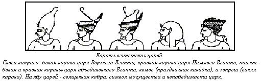 В «Египетской истории» Манефона говорится, что около двух десятков номов Верхнего Египта, по течению реки вплоть до дельты, и примерно такое же количество номов Нижнего Египта в дельте Нила на рубеже IV-III тыс. до н. э. были объединены в руках двух правителей. Правитель Верхнего Египта носил белую корону, правитель Нижнего Египта – красную. Борьба между ними привела в конечном итоге к победе правителя Верхнего Египта, короновавшего себя обеими коронами. Начиная с легендарного объединителя Египта Мины (Менеса) фараоны были всевластными и обожествлёнными правителями огромного, хотя политически ещё не очень устойчивого государства – государства раннего по типу и уникального по характеру связей в нём.
