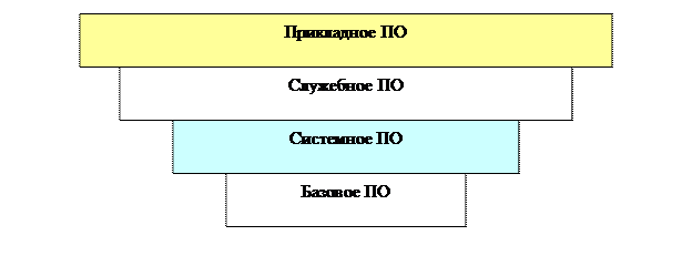 Программное и аппаратное обеспечение в компьютере работают в неразрывной связи и в непрерывном взаимодействии. Между программами, как и между физическими узлами и блоками существует взаимосвязь – многие программы работают, опираясь на другие программы более низкого уровня. Уровни программного обеспечения (ПО) представляют собой пирамидальную конструкцию. Каждый следующий уровень опирается на программное обеспечение предшествующих уровней (рис.1).