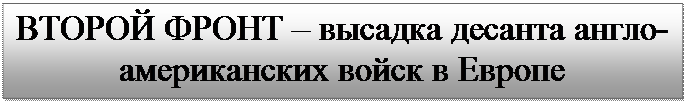 В 1943 на Тегеранской конференции союзниками решался вопрос об открытии 2 фронта. В результате было принято решение о высадки англо-американского десанта во Франции в мае 1944 года. Но на самом деле второй фронт был открыт только 6 июня 1944 года. В конце 1944 немцы начали наступление на З. фронте. Впервые англо-американские войска сражались не с резервными дивизиями, а с отборными частями Вермахта. Немецкие войска сумели полностью разгромить 2 американские дивизии.