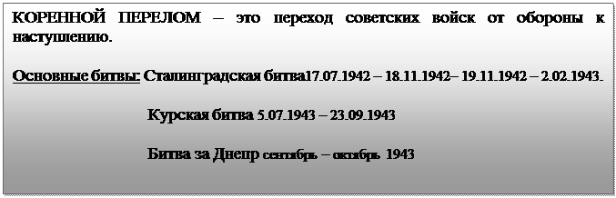 Вывод: после коренного перелома начинается общее наступление советских войск.