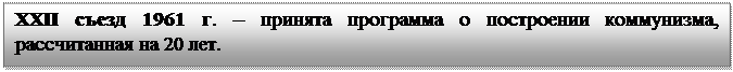 После 1962 года начинается кризис: повышаются цены, появляются длинные очереди, до ходит до того, что начинаются закупки зерна за границей, восстание в Новочеркасске, Хрущев был снят с поста.