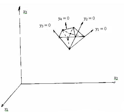 Рис. 2.6. Геометрическая интерпретация симплекс-метода для трехмерного случая