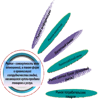 Рынок — это совокупность экономических отношений между субъектами рынка по поводу движения товаров и денег, которые основываются на взаимном согласии, эквивалентности и конкуренции.